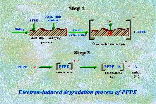 Due to action of the emitted electrons with the lubricant molecules, negative ions and radicals are produced on the rubbing surfaces. Interaction of negative ions with a solid surface leads to the formation of a chemisorbed protective film (organometallic film) which protects the rubbing surfaces from wear. If shear strength is high, it can cause cleavage of chemical bonds producing an inorganic film, for example iron sulfide, and generating further radicals followed by adequate chemical reactions.