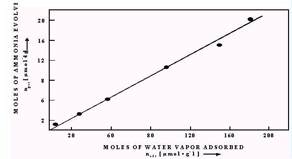 The difference can be explained in terms of the NIRAM-HSAB approach as depicted in Figure 16. This mechanisms distinctly demonstrates that the consumed molecule of water does not produce any gas. Of course further steps of the reaction chain will produce ammonia. Assuming that not all hydrogen radicals recombine with only one nitrogen atom, it is easy to realize that even over ten water molecules might be adsorbed to produce only one ammonia molecule. Further reaction steps relate to generation of -NH2 species and finally ammonia (NH3) is produced.
