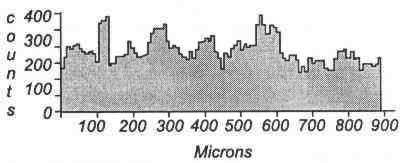 Rysunek 6 i 7 przedstawia natomiast wyniki liniowej mikroanalizy wykonanej wzdłuż linii zaznaczonych odpowiednio na rysunku 4 i na rysunku 5 w celu określenia zmian zawartości węgla, tlenu i żelaza.