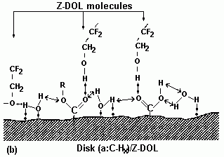 - chemical bonding of PFPE lubricant films with DLC surfaces under sliding conditions.