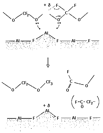 CF3—O—CF2— + e → •CF3 + ¯O—CF2—