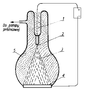 Zasadniczym elementem polowego mikroskopu jonowego jest komora szklana zaopatrzona w fluoryzujący ekran. Naprzeciw ekranu jest umieszczona bardzo cienka i ostra monokrystaliczna igła badanego metalu chłodzona ciekłym wodorem. W komorze znajduje się rozrzedzony hel lub neon (rys. 3.17). Do ostrza ekranu