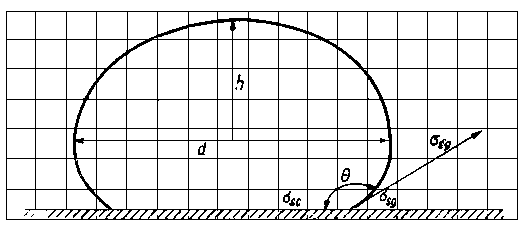 Ciało stałe i ciecz przed zwilżaniem mają napięcia powierzchniowe ssg i sgc. Z chwilą gdy ciecz zwilża ciało stałe, powstaje wspólna powierzchnia międzyfazowa o napięciu powierzchniowym ssc.