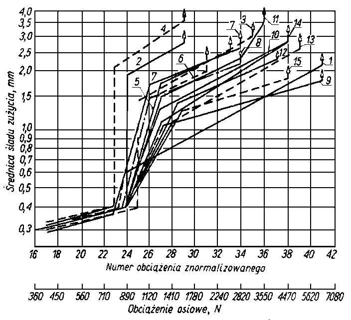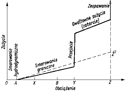 Rys. 5.74. Zależność zużycia od przyłożonego obciążenia (wg Kulczyckiego);