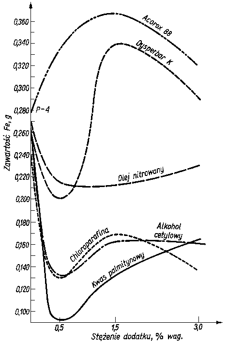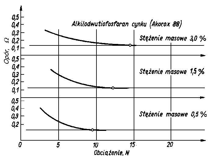 Rys. 5.50. Wpływ stężenia różnych dodatków na zdolność ochronną oleju P-4