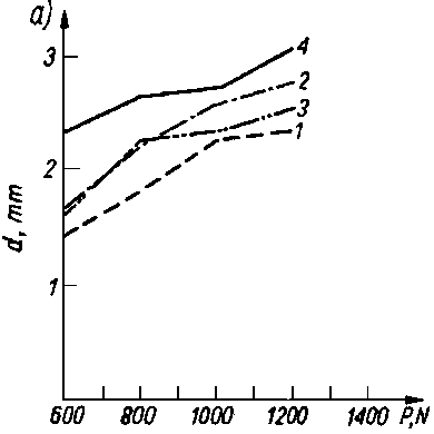 Rys. 5.49. Zależność oporów tarcia od nacisków jednostkowych przy smarowaniu olejem bazowym P-5 i olejem z dodatkami podczas badania na aparacie: