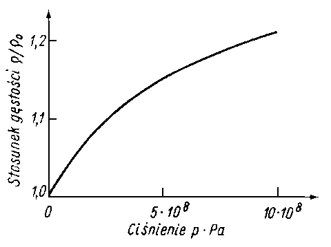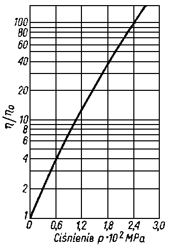 Rys. 6.103. Zależność gęstości od ciśnienia dla typowego oleju mineralnego