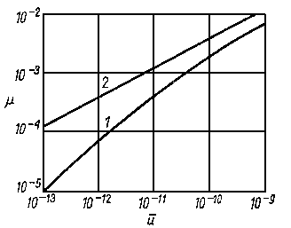 Rys. 6.106. Zależność współczynnika tarcia µ od parametru prędkości w obszarze styku kontaktowego przy W = 10 -5, G = 5000: