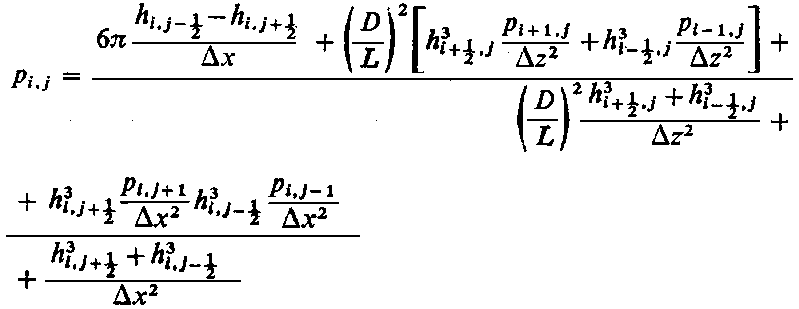Na rys. 6.45 przedstawiono analog, w którym głębokość elektrolitu jest proporcjonalna do h³, zaś prąd w każdym elemencie pola A jest proporcjonalny do 6ηU(d h/d x). Model ten wytwarza potencjały E proporcjonalne do rozkładu ciśnienia istniejącego w łożysku.