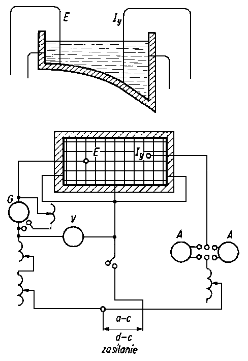 gdzie: k - rezystywność, H - wysokość elektrolitu, I - prąd płynący przez powierzchnię A elektrolitu.
