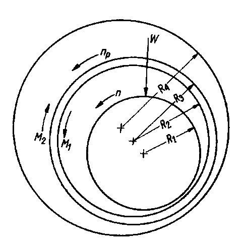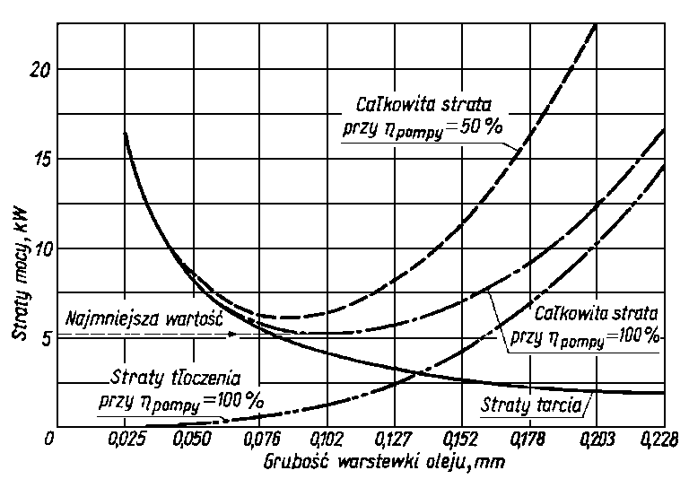 Charakteryzując prace łożyska ściśle pasowanego o maksymalnej nośności przy znanej grubości warstwy oleju, w tabl. 6.10 podano wartości parametrów, przy których uzyskuje się minimum siły tarcia.