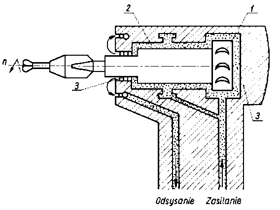 - - łożysko hydrodynamiczne, zasilane smarem pod ciśnieniem (ciągła wymiana oleju),