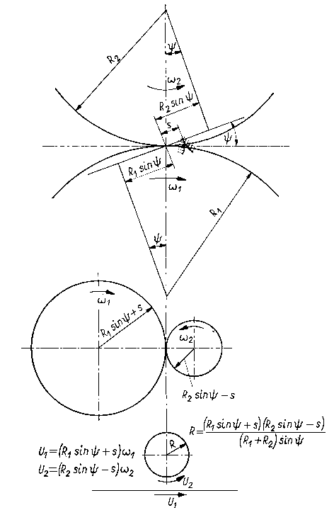 (R1 sin ψ + s) (R2 sin ψ - s) (R1 + R2) sin ψ