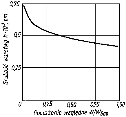 2) w zakresie, w którym powierzchnie odkształcają się sprężyście, grubość warstwy elastohydrodynamicznej zależy w niewielkim stopniu od obciążenia;